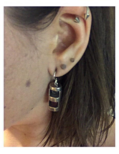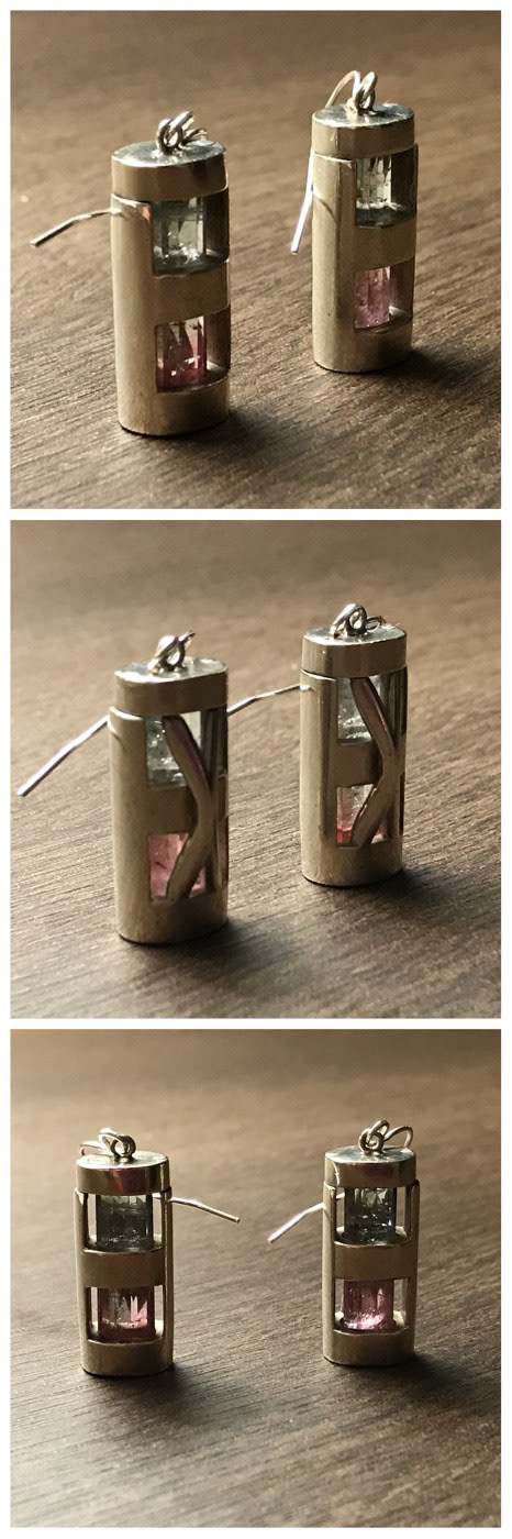 Earrings made in Rhino, printed and cast in sterling silver. Stones are bicolored tourmalines.